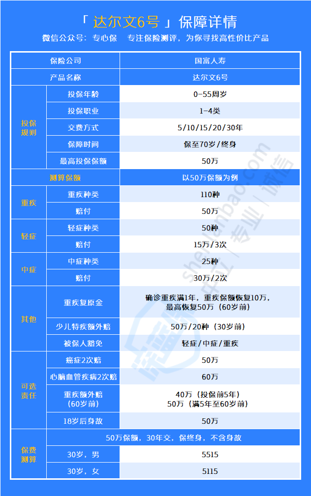 说起当下最炙手可热的重疾险产品,就不得不提及国富达尔文6号重疾险,它的价格便宜,可选保障丰富。