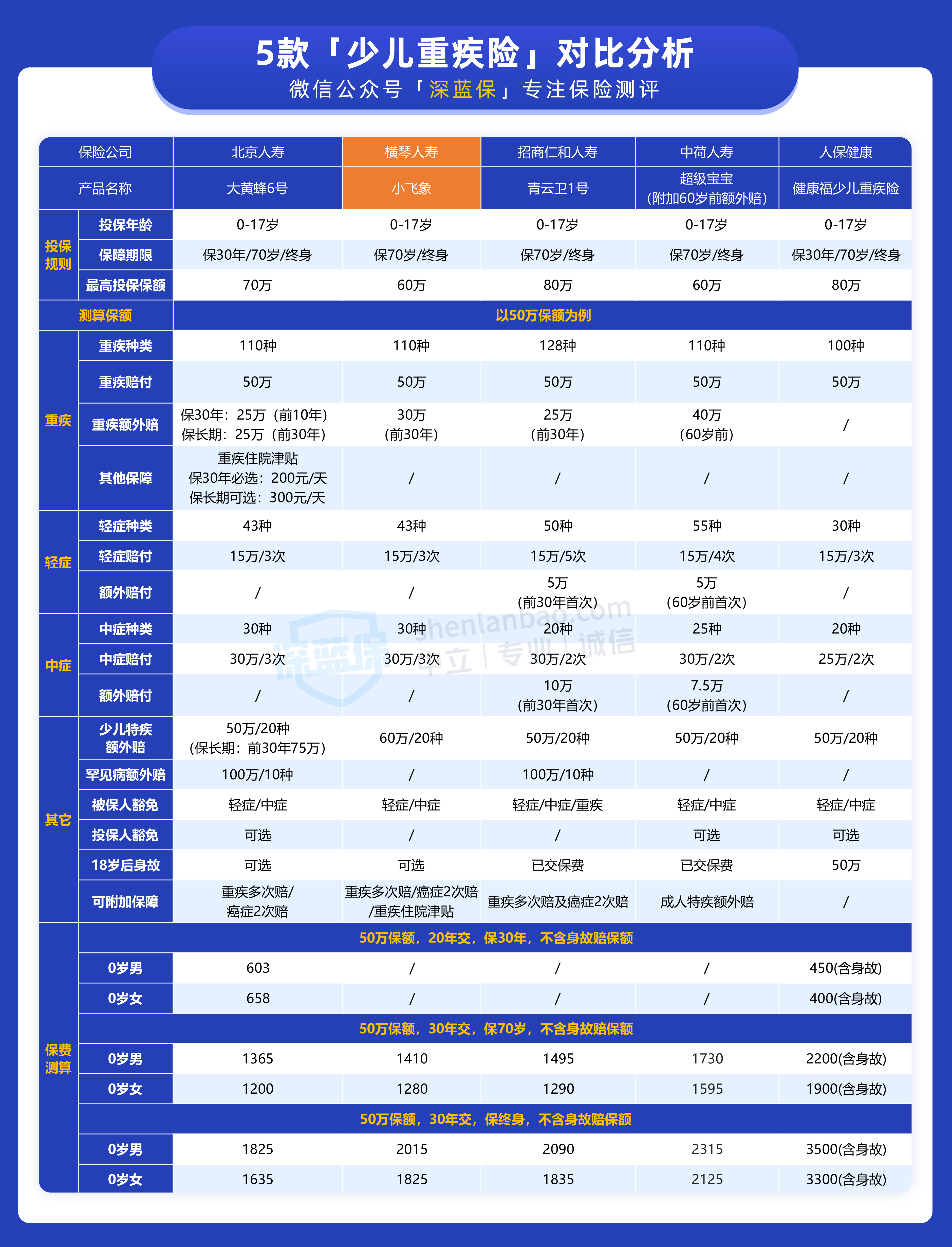 作为一款少儿重疾险,很多宝妈也会重点关注是否有专门的少儿特疾保障,而作为后起之秀,小飞象的表现也是众望所归,它涵盖了20种少儿特疾保障,像白血病、恶性淋巴瘤、严重脑损伤等各种儿童高发疾病也在其中。