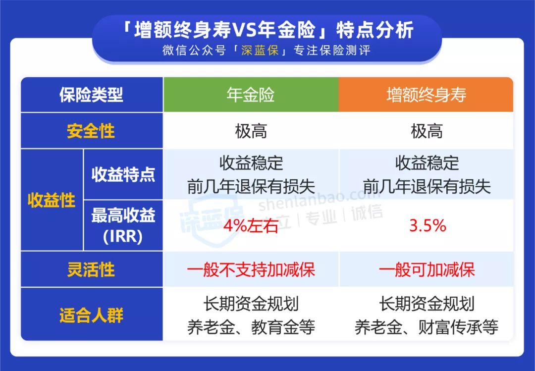 年金险与增额终身寿,各有什么特点?