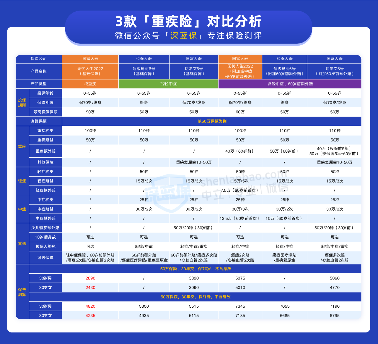 此外还要考虑投保规则、免责条款、保费价格等因素,在之前的重疾险挑选指南上,我也有详细分析过,大家感兴趣的可以点击阅读:《重疾险怎么买?2022年全网重疾险超全选购指南》