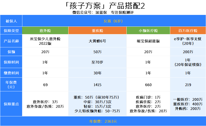 针对预算一两千的家长,分享一下实用的孩子保险方案,供大家参考: