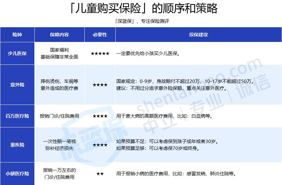 1000元的预算,可以给孩子配齐意外险、保30年的重疾险、百万医疗险了,基础保障是完全没问题的!