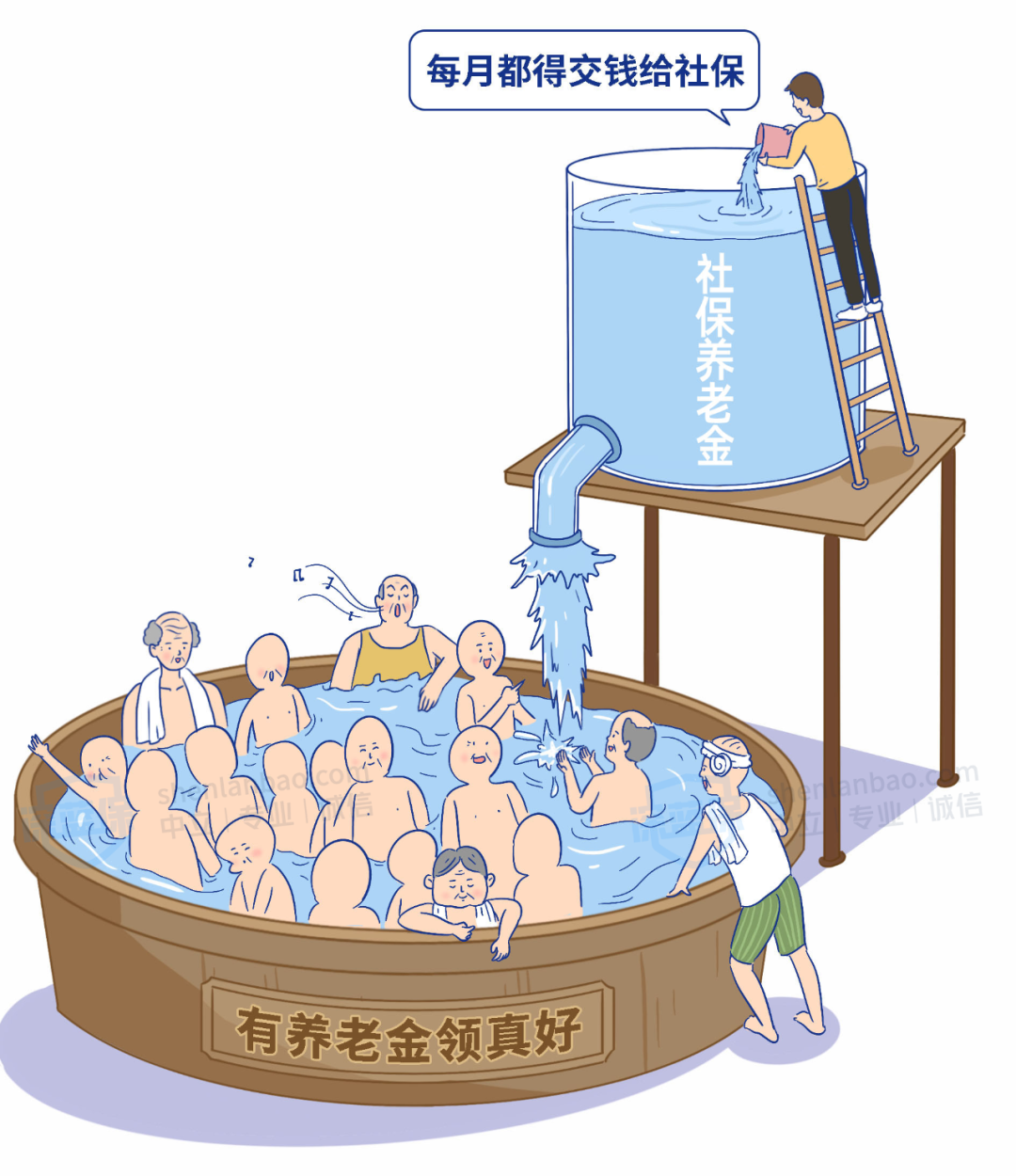 如果我们把社保养老金比作水池,老年人越多,池子流出的水就越大。