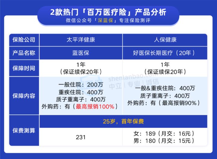 目前蓝医保和好医保 20 年是市面上数一数二的百万医疗险,不仅保障全面,而且能保证续保 20 年,具体怎么选,我们一起来看: