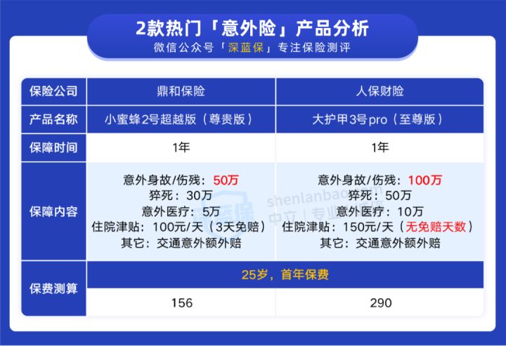 年轻人买意外险,保额最好买到 50 万到 100 万,这样才足够应对意外风险。我们也同样给大家挑了两款高性价比产品: