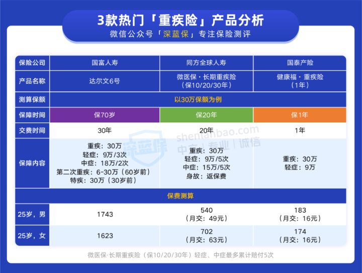 而趁着年轻买,价格也会更便宜。以 25 岁买 30 万保额为例,我们给大家找了一些不错的产品: