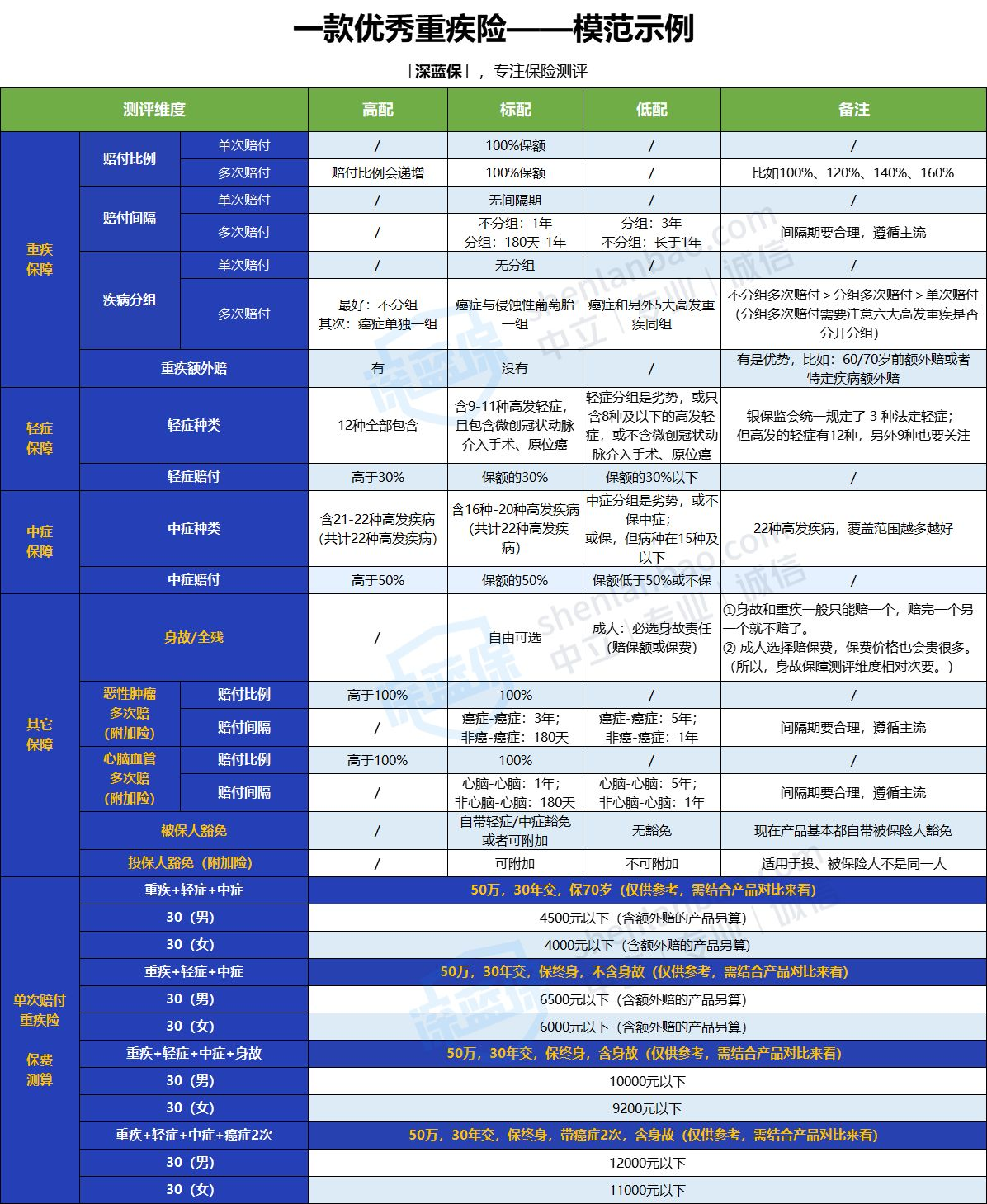 了解了这张图之后,大家可以用这张图中的一些测评的标准来判断一款重疾险产品的好与坏,以及是否真正适合自己。