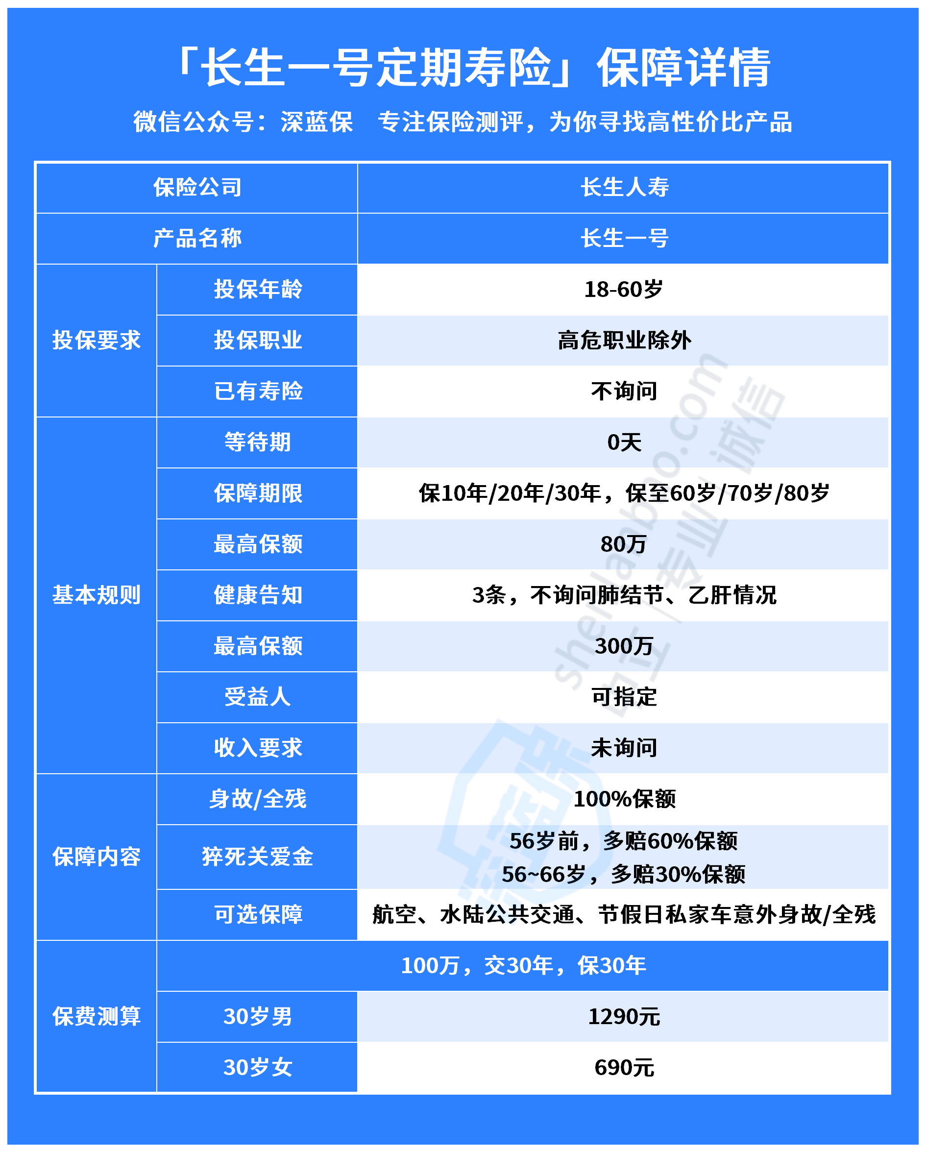 今天深蓝君就来跟大家深度测评一下“长生一号定期寿险”,看看它表现如何。