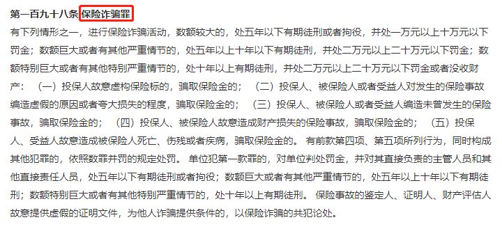《刑法》中就有“保险诈骗罪”的规定,大家可以简单感受一下: