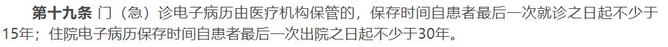 可以看到,医院对我们的门诊病历保存至少15年,住院病历保存至少30年。