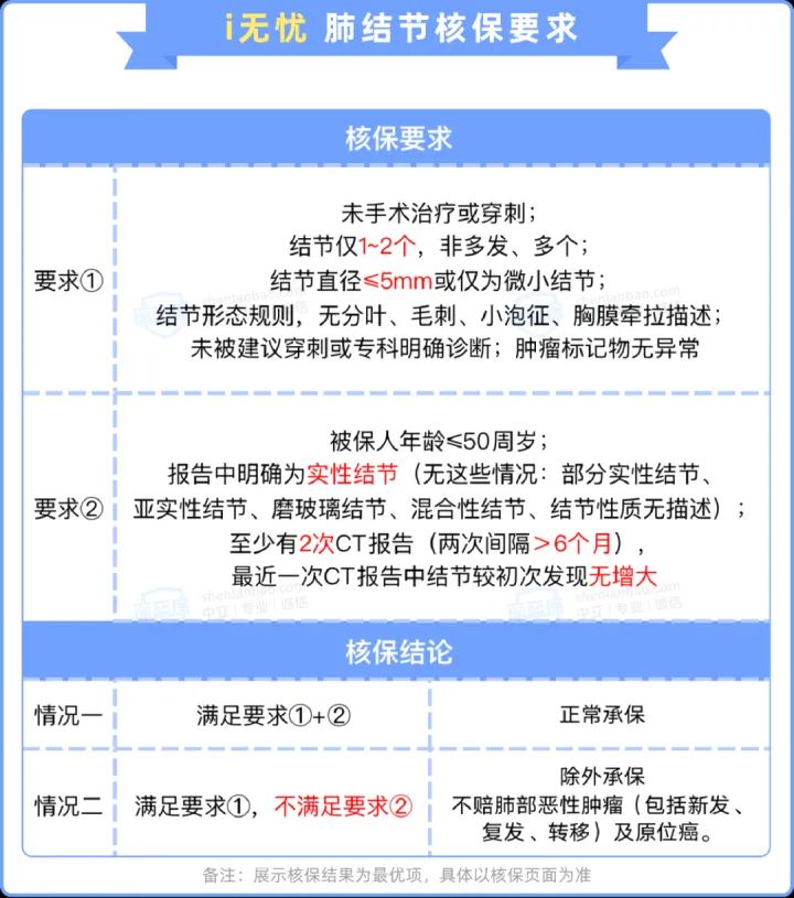 可以看到,i 无忧对未手术肺结节的核保要求十分明确。