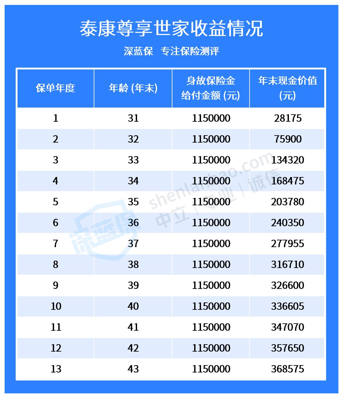 如下是泰康尊享世家终身寿险的保障图: