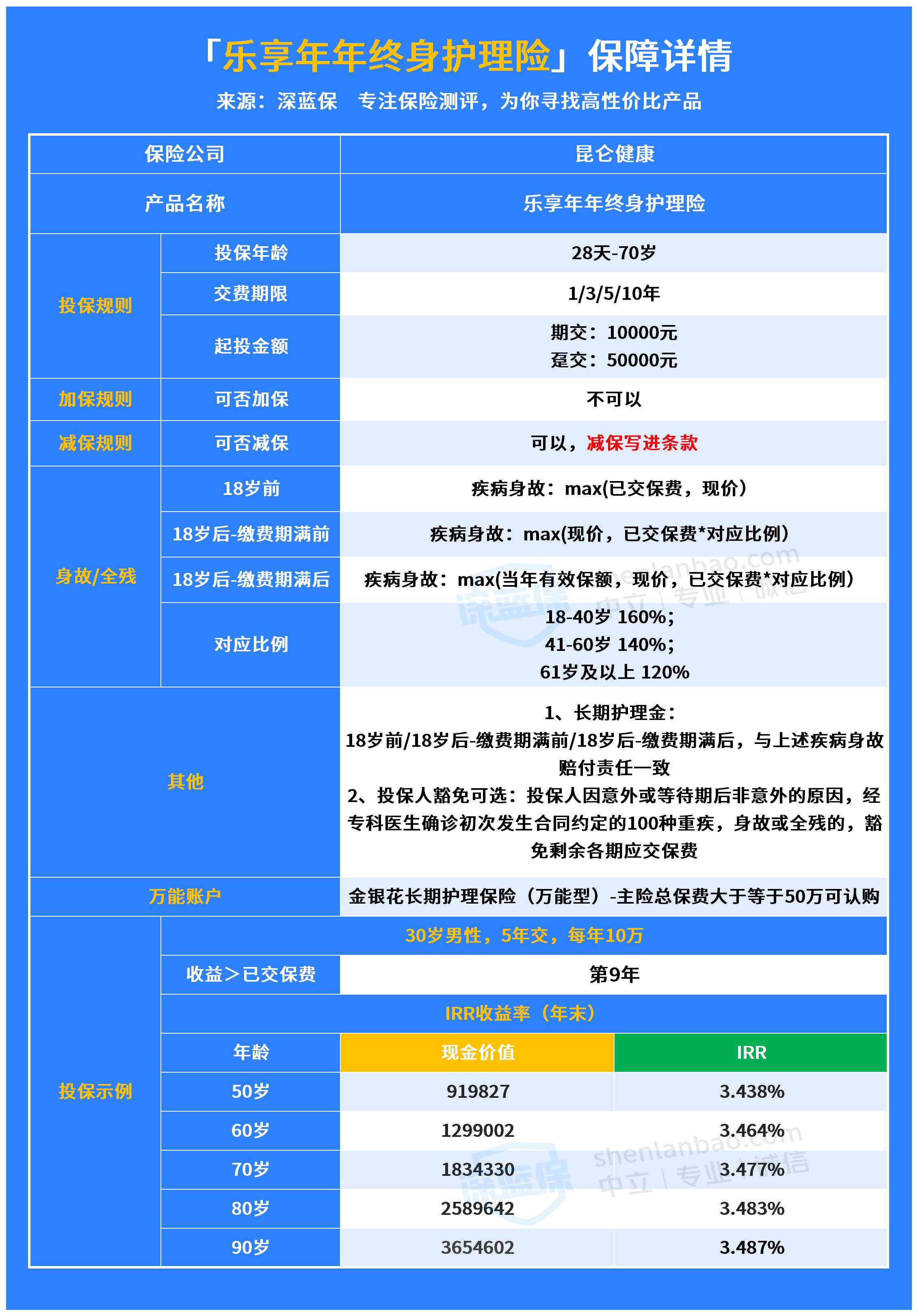 如果你看重护理保障,追求高收益,这款乐享年年终身护理险是值得考虑的。