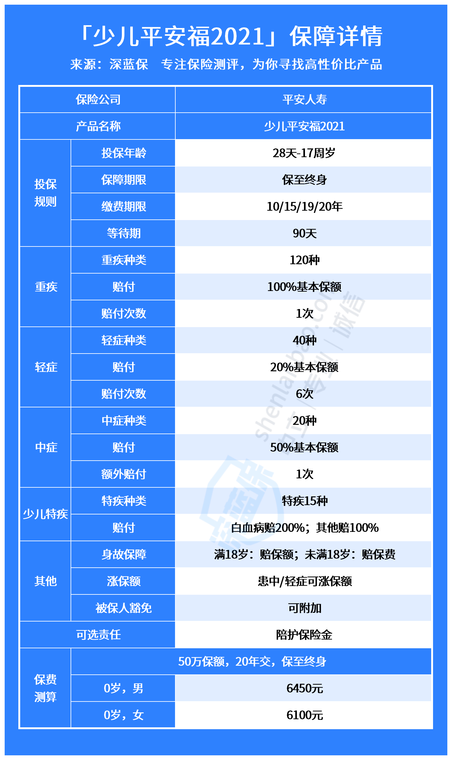 少儿平安福系列是平安人寿推出的王牌少儿重疾险,下面我们以少儿平安福2021为例,一起来看看它的保障如何: