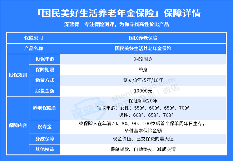 在了解了承保公司的背景后,我们回到产品本身,来看下国民美好生活养老年金保险的基本保障如何?