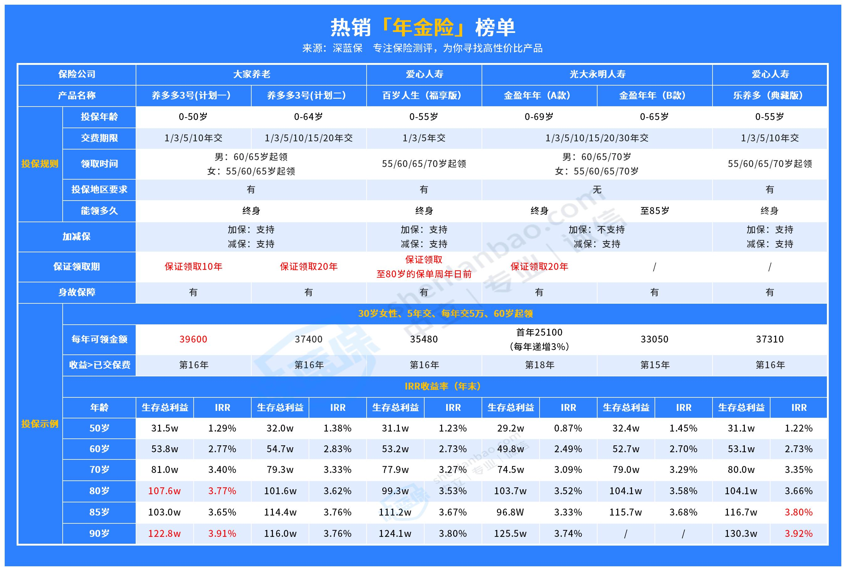 图中的养多多3号和乐养多(典藏版)这两款都是目前畅销的养老年金保险。