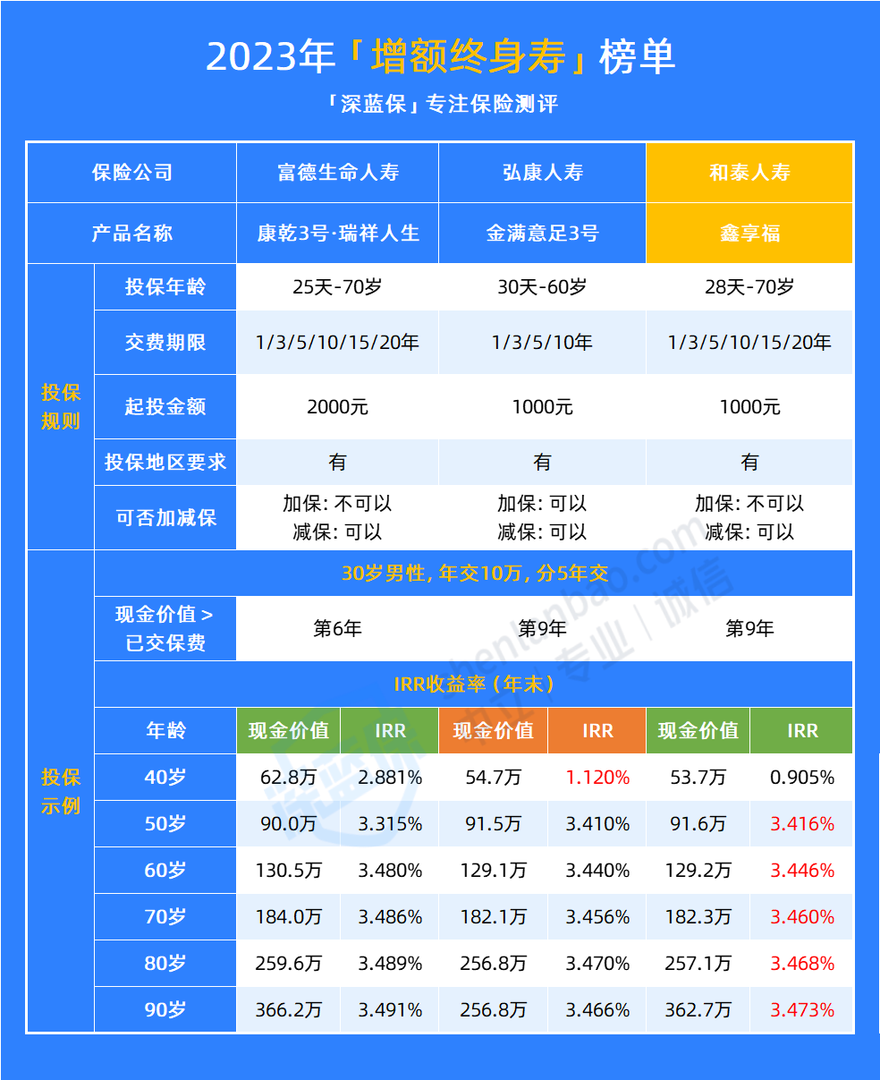 而鑫享福(青春版)是款增额终身寿险产品,它的投保门槛较低,并且自带了航空额外赔的保障,如果你目前想要配置一份增额终身寿险的话,那么它会是个值得考虑的选择。