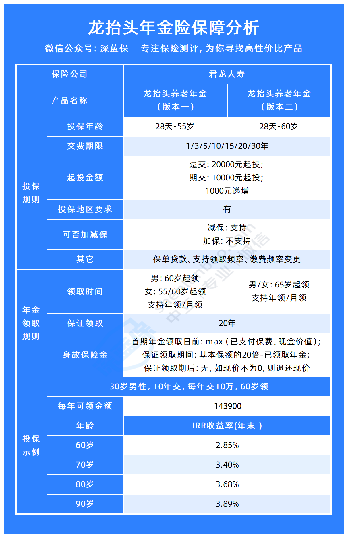 以上就是今天深蓝君带给大家关于“龙抬头年金险怎么样?哪款年金险值得买?”的全部内容。