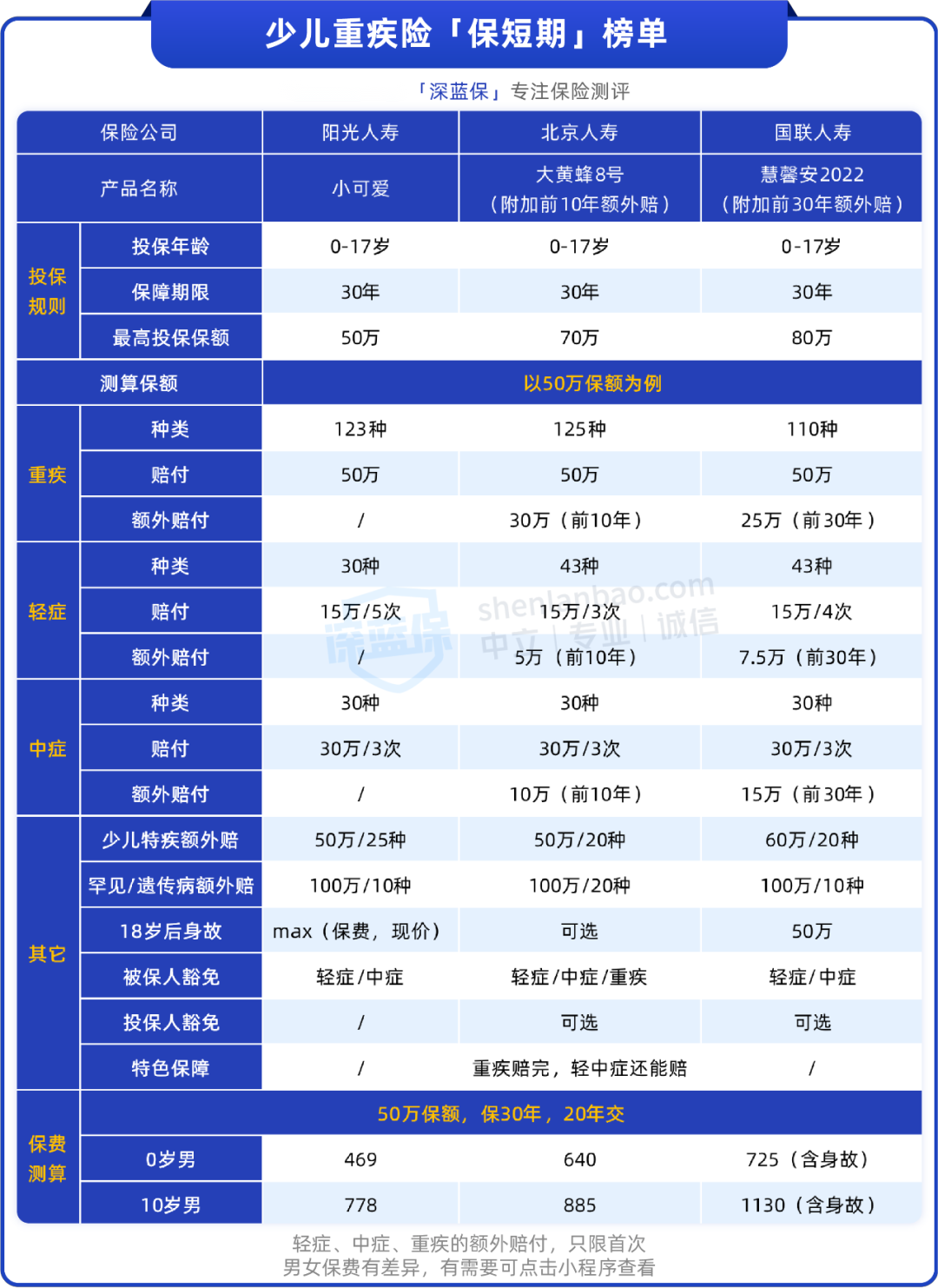 小可爱不管是只保重疾还是附加轻中症保障,性价比都很高,比较适合预算不多,或想给孩子增加保障的朋友。