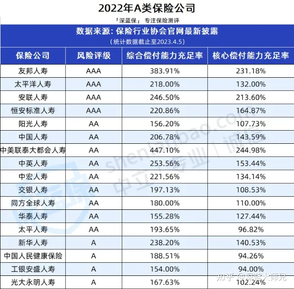 当然了,除了我们消费者关心外,金监局也会非常关注这一点,它会定期考核保险公司的偿付能力,还会给出相应的风险评级。