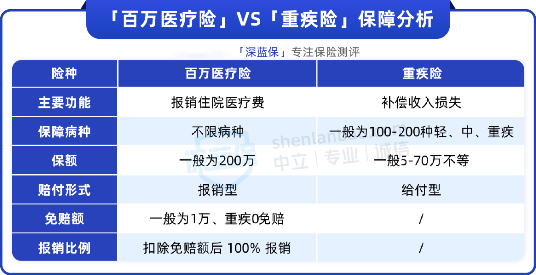 今天深蓝君就给大家分享一下百万医疗和重疾保险的区别有哪些?有必要都买吗?