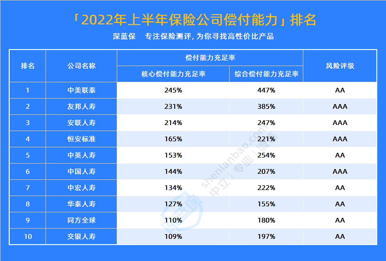 可以看到,像友邦人寿、安联人寿、恒安标准等,风险评级都在AAA,交出了高分答卷。