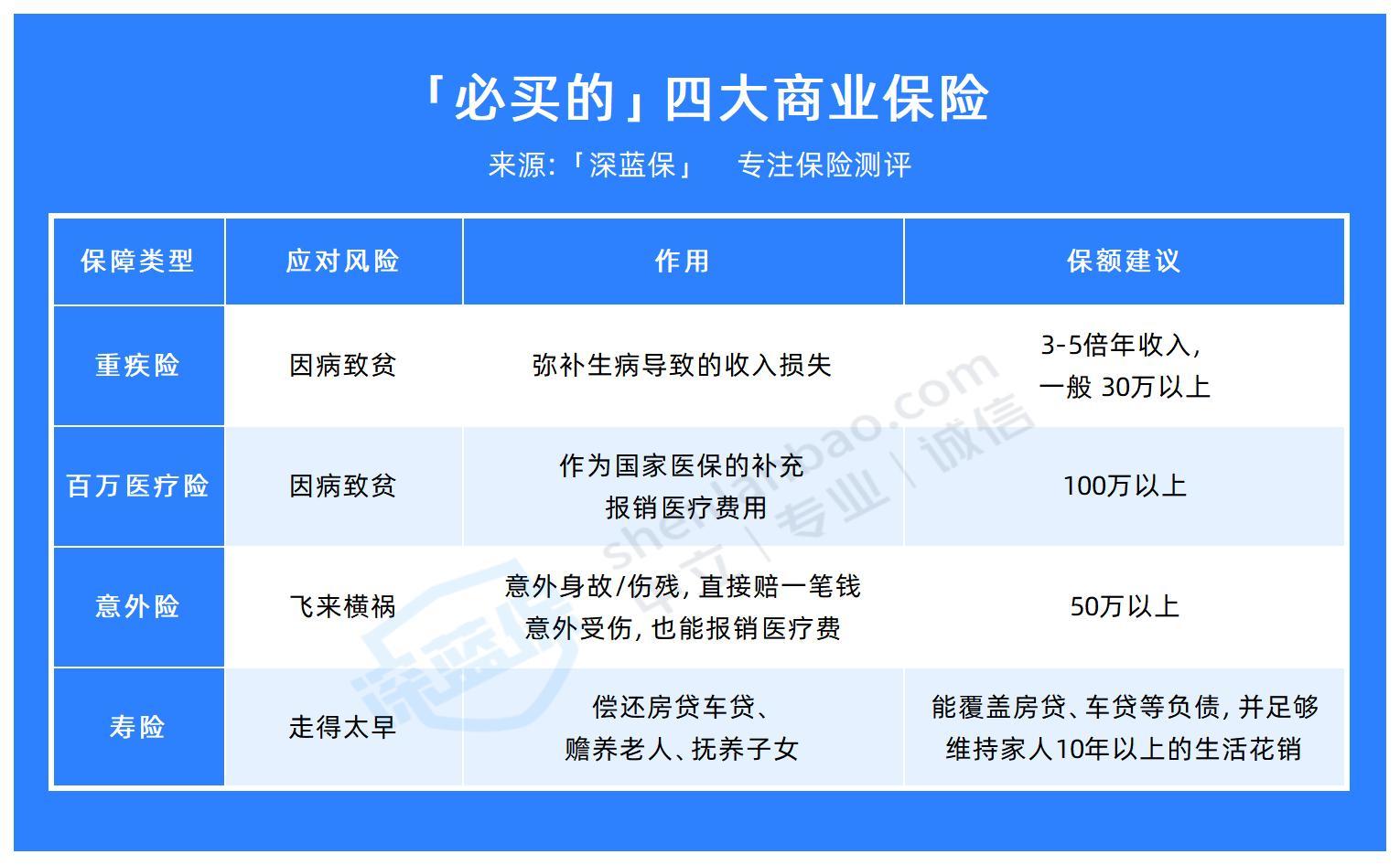 对于大多数人群而言,有四种保险是最值得买的,下面深蓝君就为大家解答一下。