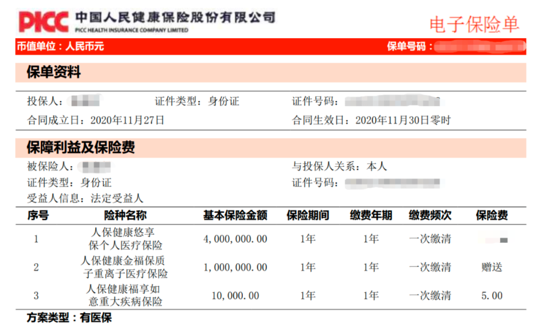 关键是这样一份保险,它价格还非常便宜,像我之前买的 50 万保额,每年只要花 100 多;