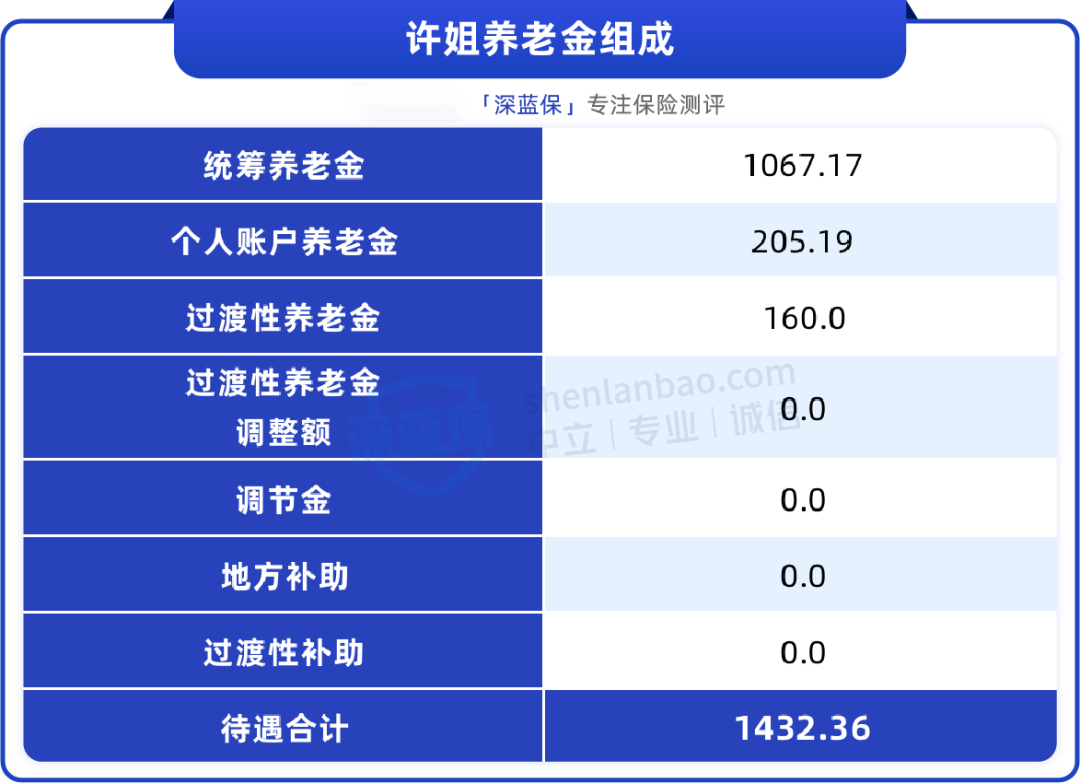 可以看到,她的退休金主要是由三个部分组成: