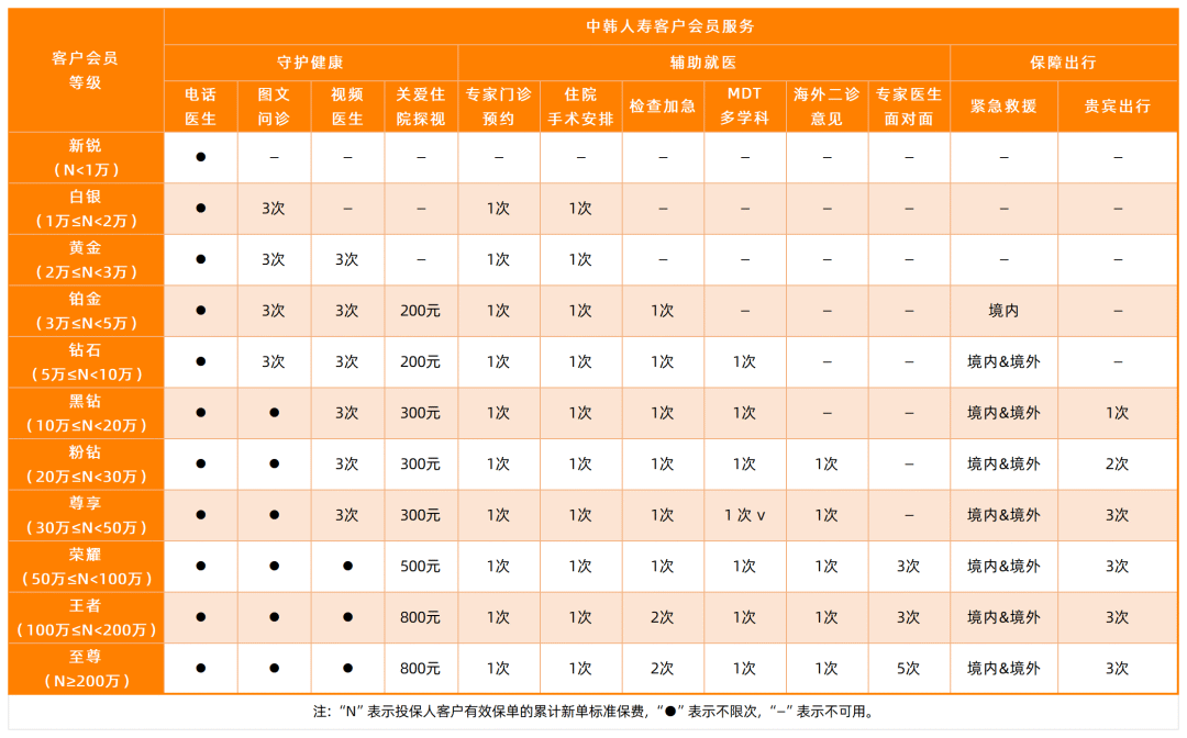 实际会员等级及服务详情以中韩人寿公布信息为准