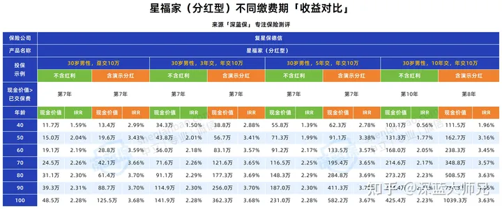 在图中不同交费条件下,星福家的固定收益部分,irr最高有2.3%多,表面上看起来普普通通。