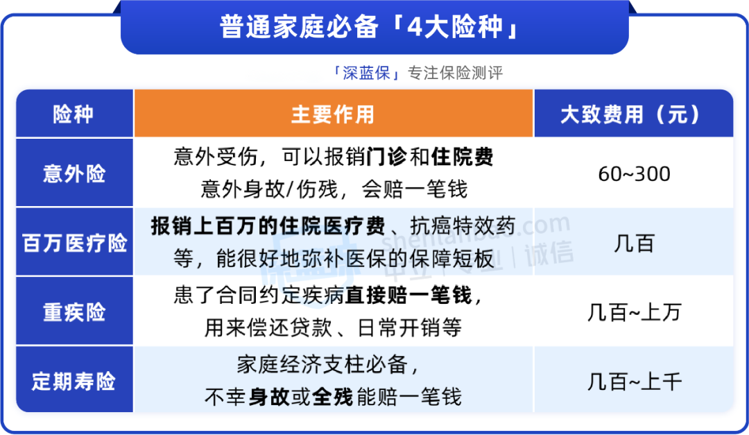 这4种保险互相搭配,能提供很全面的大病、意外、身故保障,建议给全家都配齐。