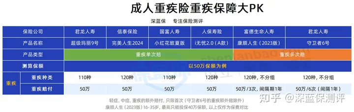 守卫者6号,则可以作为想买重疾多次赔产品的性价比首选。