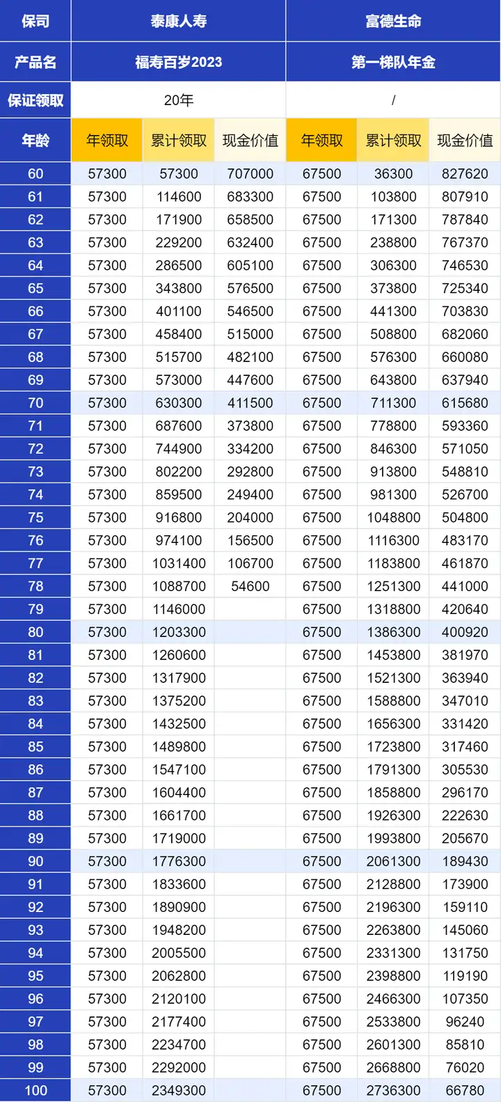 在经过3轮的层层筛选后,整体看下来,福寿百岁2023还算不错,领取只比第一名少一千块,又能保证领取20年。