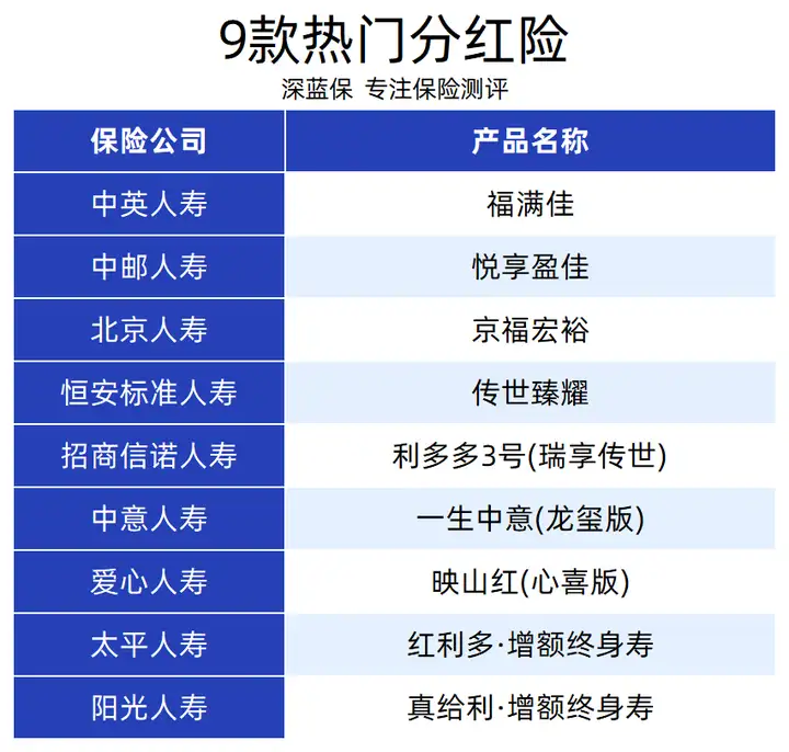 「太平人寿-红利多」、「招商信诺人寿-利多多3号」、「恒安标准人寿-传世臻耀」、「中邮人寿-悦享盈佳」。