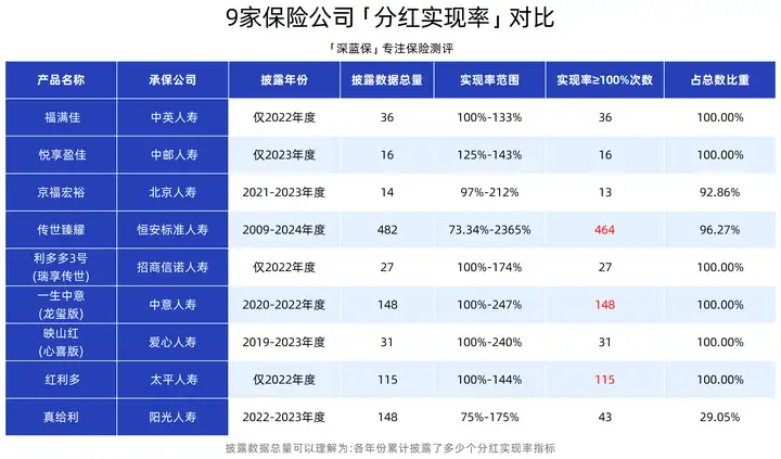 所谓分红实现率,也就是保险公司过往演示的分红,到底实现了多少。