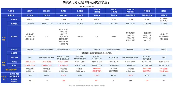 专门花了1周时间,从几十款热门分红险中,挑出被问得最多的9款,进行多轮PK测评。