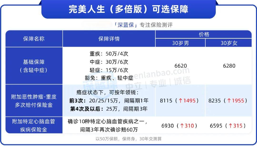 除了以上3种买法外,完美人生(多倍版)还有两项可选保障,我们简单说说如何选择。