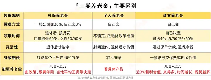 常有朋友留言问:商业养老金和社保养老、个人养老都有啥区别?