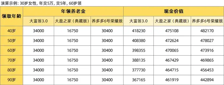 按表格的交费方式,从60岁开始每年都能领3.4万养老金,几乎是目前市面上领取养老金最高的产品。
