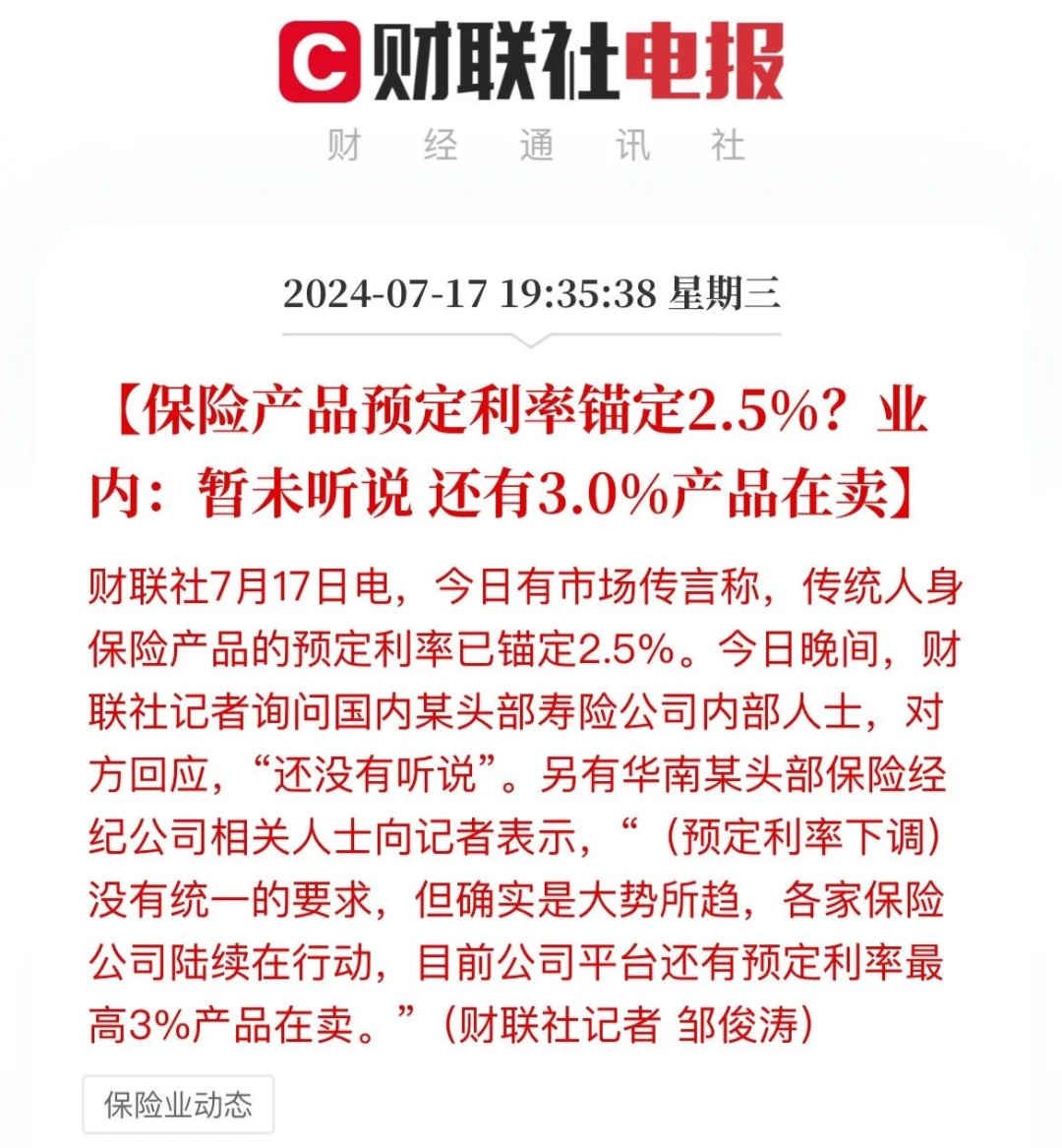 财联社也有相关报道:保险预定利率或将锚定2.5%。
