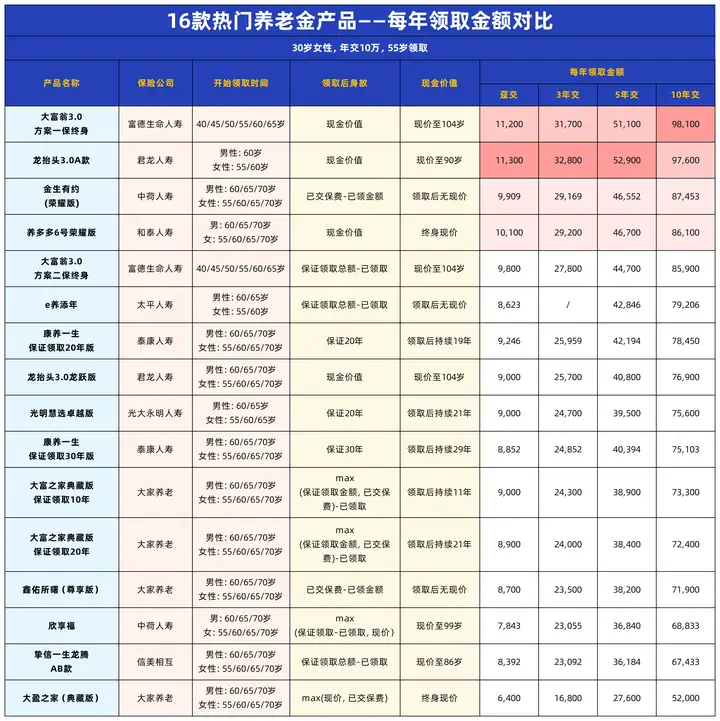 我特地花了整整一周的时间,整理了市面热门养老年金险的资料,并进行了详细的测算。
