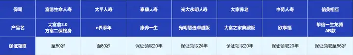 第二梯队,是保证领取20年,以及保证领取至80岁、86岁,属于标配水准: