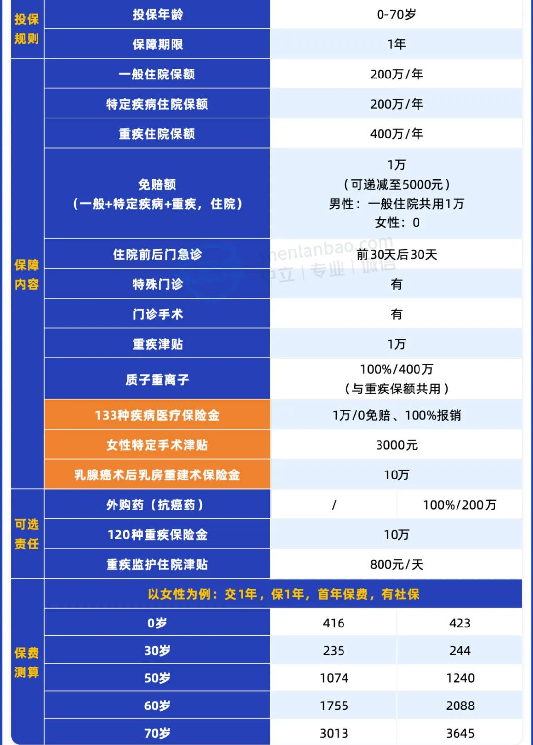 目前这款产品的知名度不算高,但保障属于市场独一份,基本技能点满,还有很多针对女性的实用保障。
