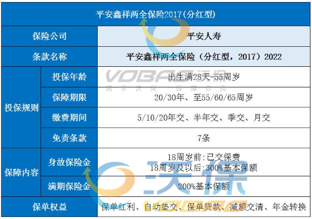 一、2022平安鑫祥两全保险2017(分红型)保什么?最新条款解析!