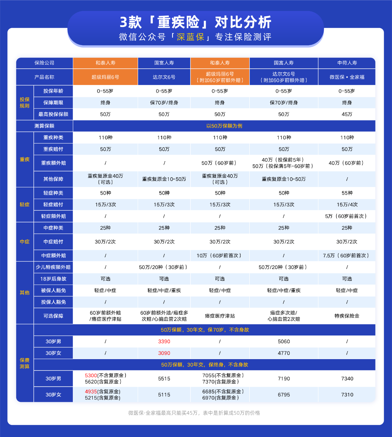 我们将超级玛丽 6 号, 与保障比较好的达尔文 6 号、微医保·全家福做对比,看看它的性价比怎么样: