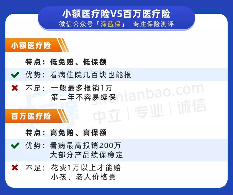 我总结了一些小额医疗险与百万医疗险的区别,我们可以从这些区别中找到小额医疗险的挑选要点: