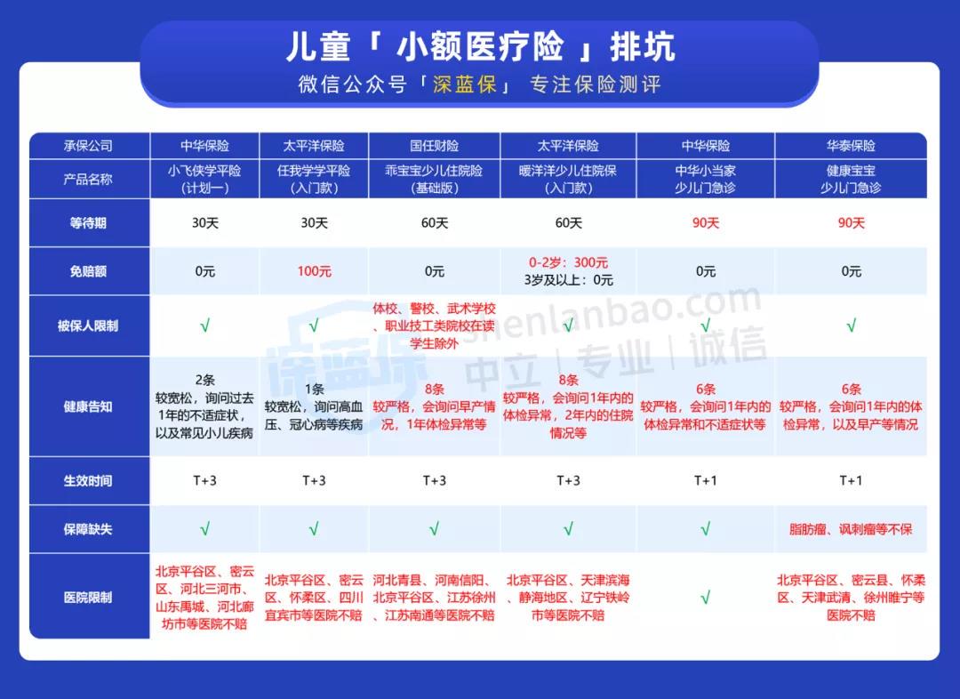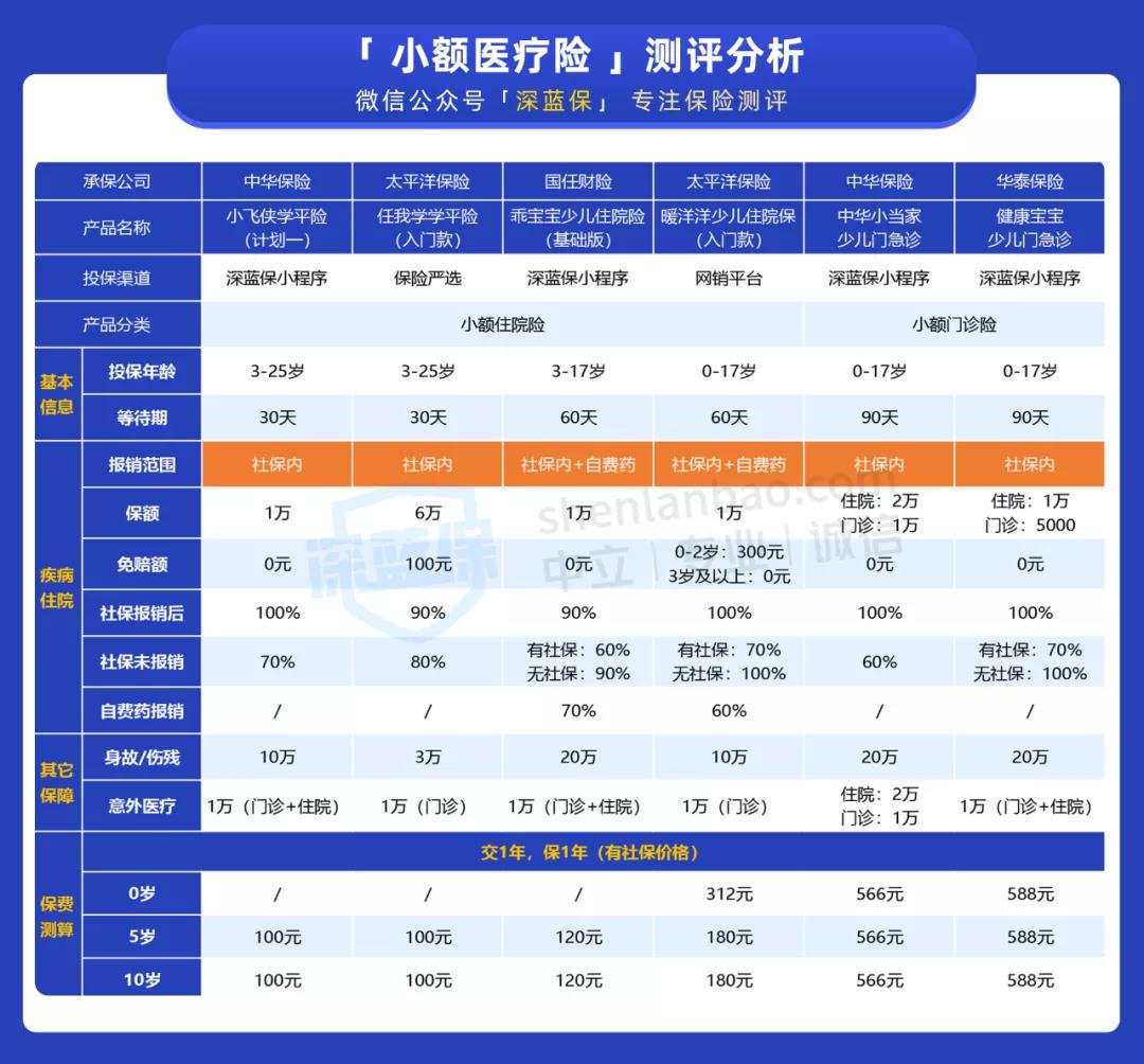1、儿童小额医疗险: