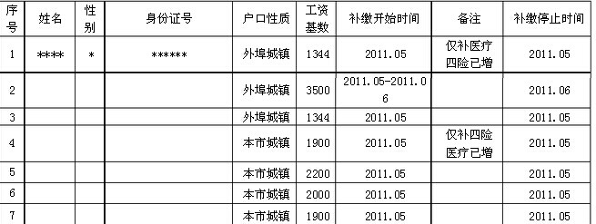 我公司新聘用员工***、****等25人,因原所在公司未及时办理减员手续,致使我公司未能按合同签订时间办理增员手续。现申请为该批员工办理社保缴费补缴,其补缴时段为2011年05月至2011年6月。详细补缴情况如下表,请予批准。