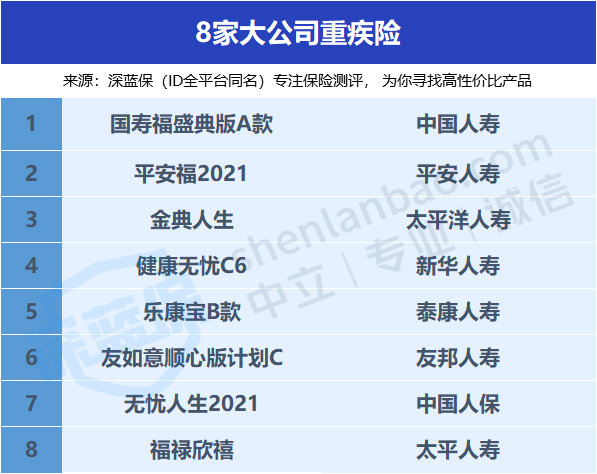 今天,深蓝君整理了8款被问得最多的大公司重疾险,为大家介绍一下,2021重疾险哪款最好?